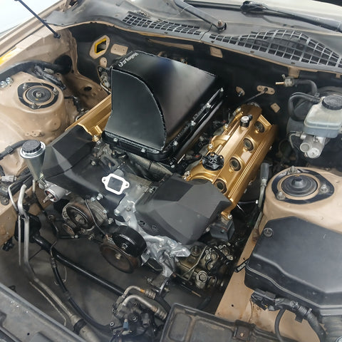 1uzTech Holley High Ram Intake Manifold Plate. Inlets come bell mouth radiused. Bolts to stock 1UZ Non Vvti lower manifold. Allows any intake lid based off Holley High Ram to bolt on. (Not Included)